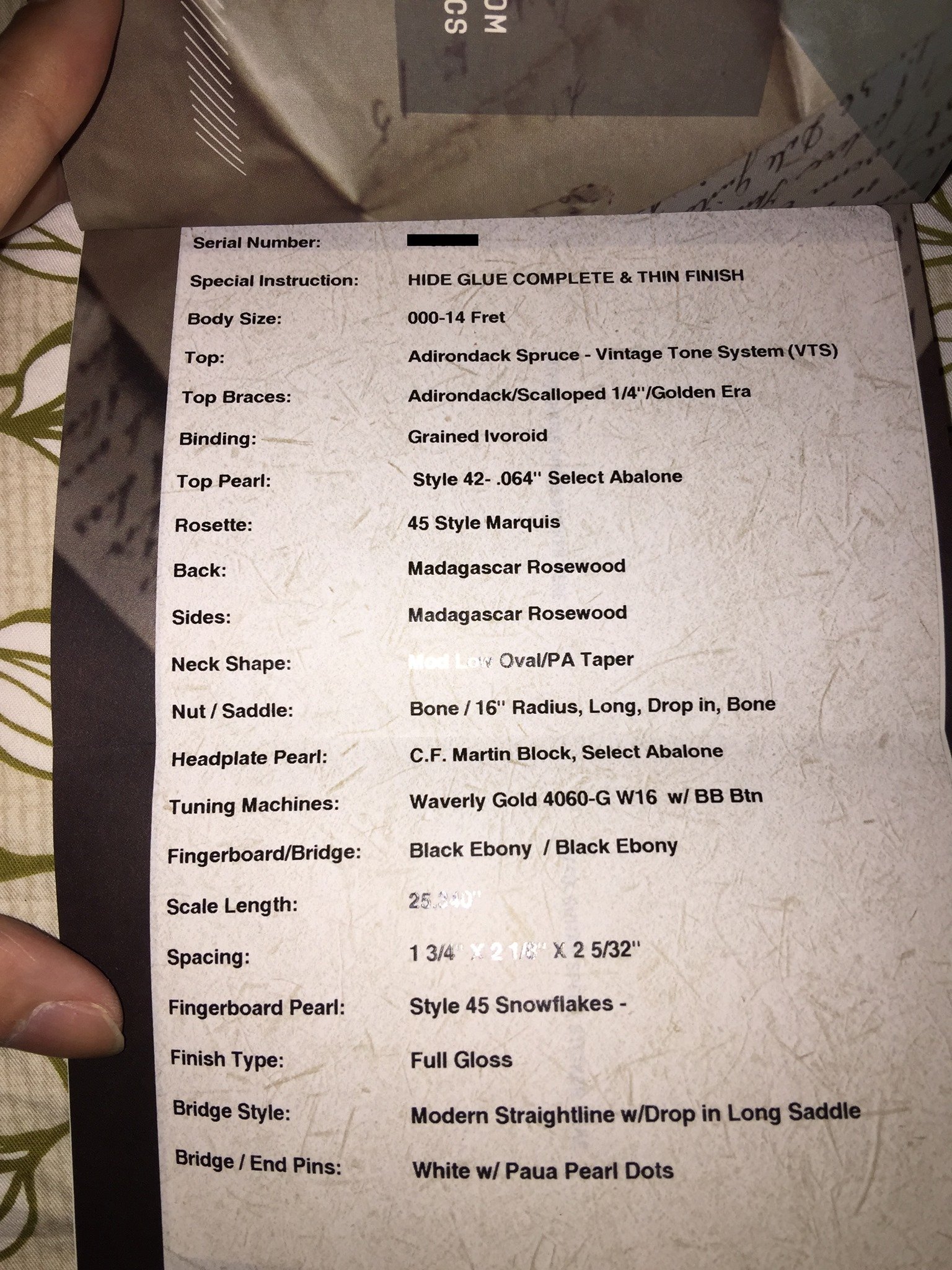 這把琴看似和OM-45沒有太大差別,但老話一句,玩馬丁的人都知道魔鬼藏在細節裡!琴主這回可是將所有可以提升音色的規格全部投下去了,音色頂級沒話說!