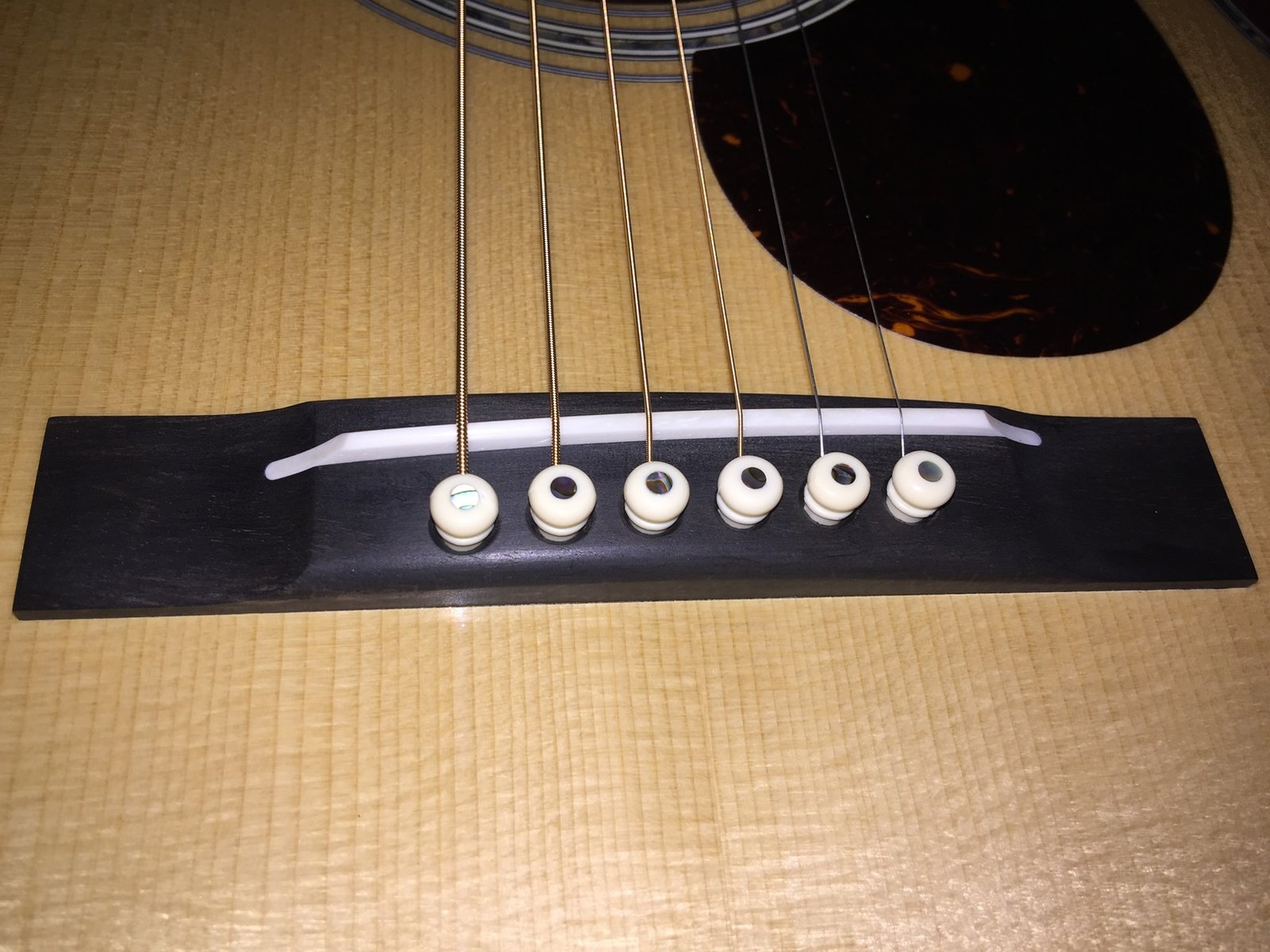 琴橋與指板都是黑檀木,配上Style 45 Snowflakes Inlay.