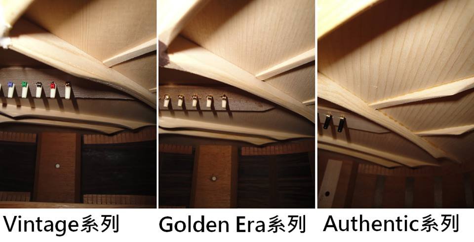 Martin的OM力木結構基本上標準配置就是X前移 (Forward Shifted X Bracing),所以官網的規格表裡不會特別註明。而這把的力木結構當然是選用可開放客製的規格裡最接近Pre war削法,音色和共鳴也最好的1930s Golden Era Style Scalloped.
