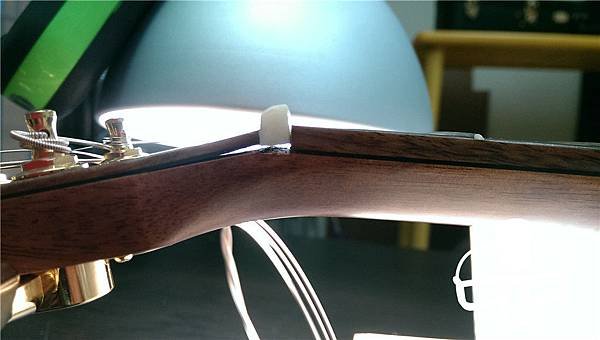 這把琴是案主的戰琴,表演、錄製專輯都靠他 不過因為這把琴有點年紀了又加上日夜的操練,還是要進廠保養啦~~ 上枕被上一手技師用奇怪的方法填補上枕槽,這種對聲音的影響當然是不允許的 索性直接更換也老舊發黃的上枕,直接升級用駱駝骨重製 已經泛黃且日漸脆弱的上枕 鍍金弦鈕暗淡無光 除鏽前 除鏽完成 保養完成 駱骨上枕~