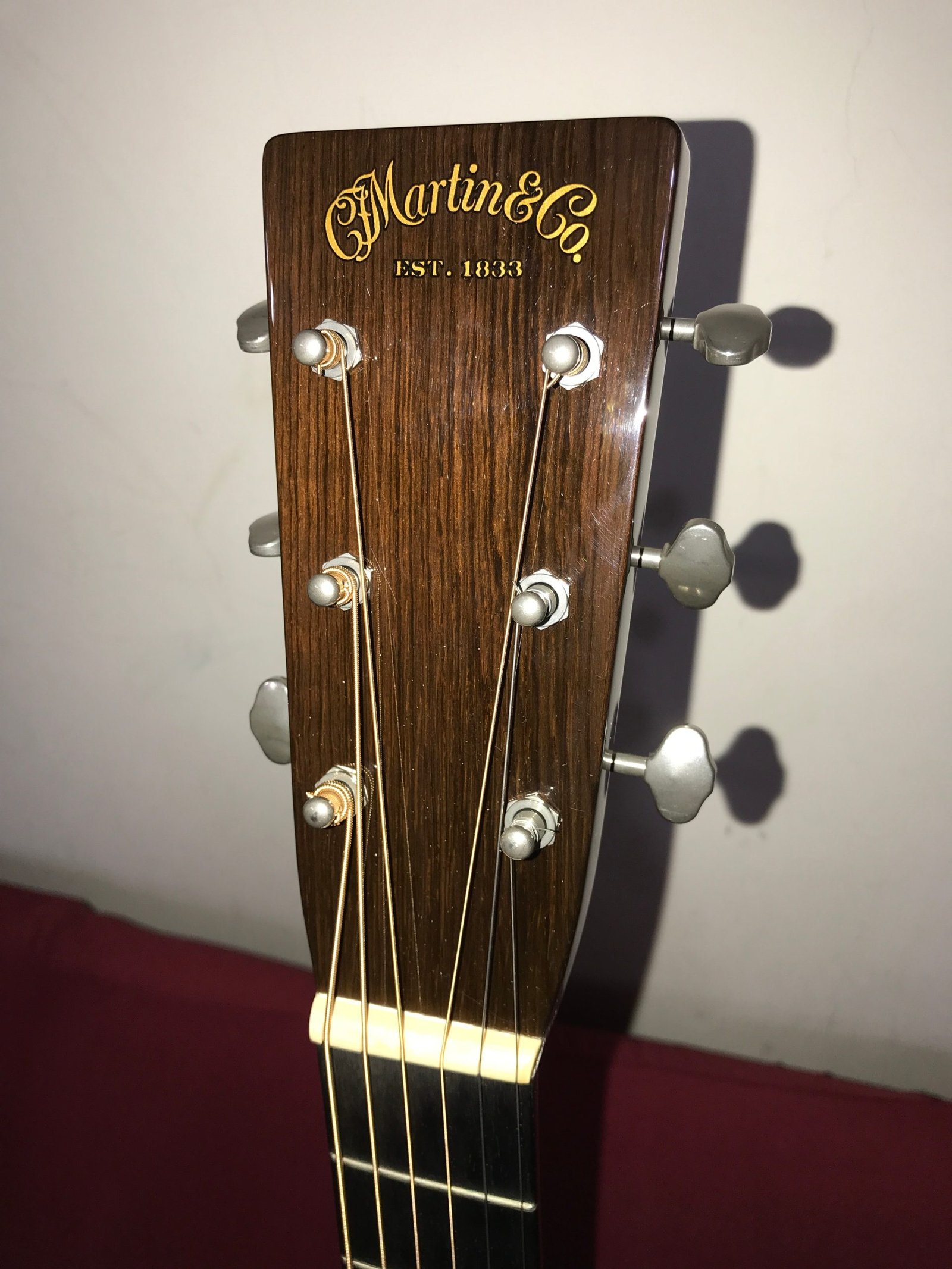 D-18 Authentic 1937在2005年一推出就造成巨大的轟動與回響,於是隔年Martin便打鐵趁熱推出了限量50把的D-28 Authentic 1937 Brazilian,連側背板都使用巴西玫瑰木,名副其實的現代版Pre-War琴!想當然爾,很快就被收藏家一掃而空了,極少出現在Youtube或是網路上。身為買不起戰前馬丁的老琴重度患者,當然也關注了很久,但一直沒有太多的訊息,或者適合下手的目標,原因不外乎1. 即使是二手琴,它還是天價!2. 難得有幾把在市場現身,近期馬丁所使用的Adirondack面板和Brazilian Rosewood背板木紋都讓我覺得對不起這個價格。然而不久前美國某間Dealer好友手上剛好有一位客人寄賣的琴,無論是木紋、琴況等皆是萬中選一:木紋極度直密的Adirondack面板、近乎Quarter-Sawn的直紋巴西玫瑰木側背板,而非一堆漩渦狀的奇怪紋路,對於木頭真正有研究的商人或玩家,都知道要找到像vintage馬丁用的那種直紋巴西玫瑰木有多稀少!最後,賣家是位富有的外科醫生,主要是收藏用,所以琴況幾乎和新的沒兩樣。