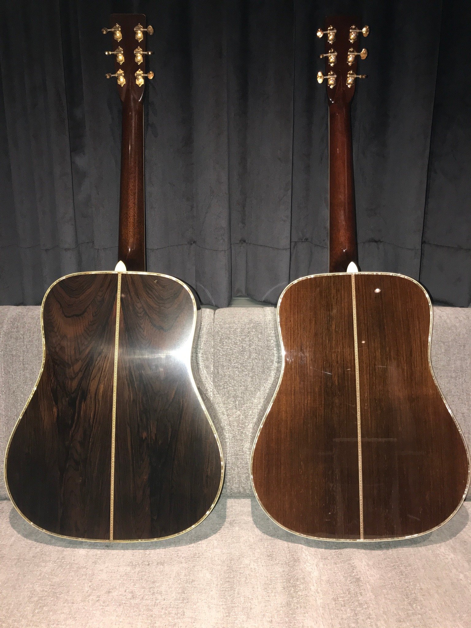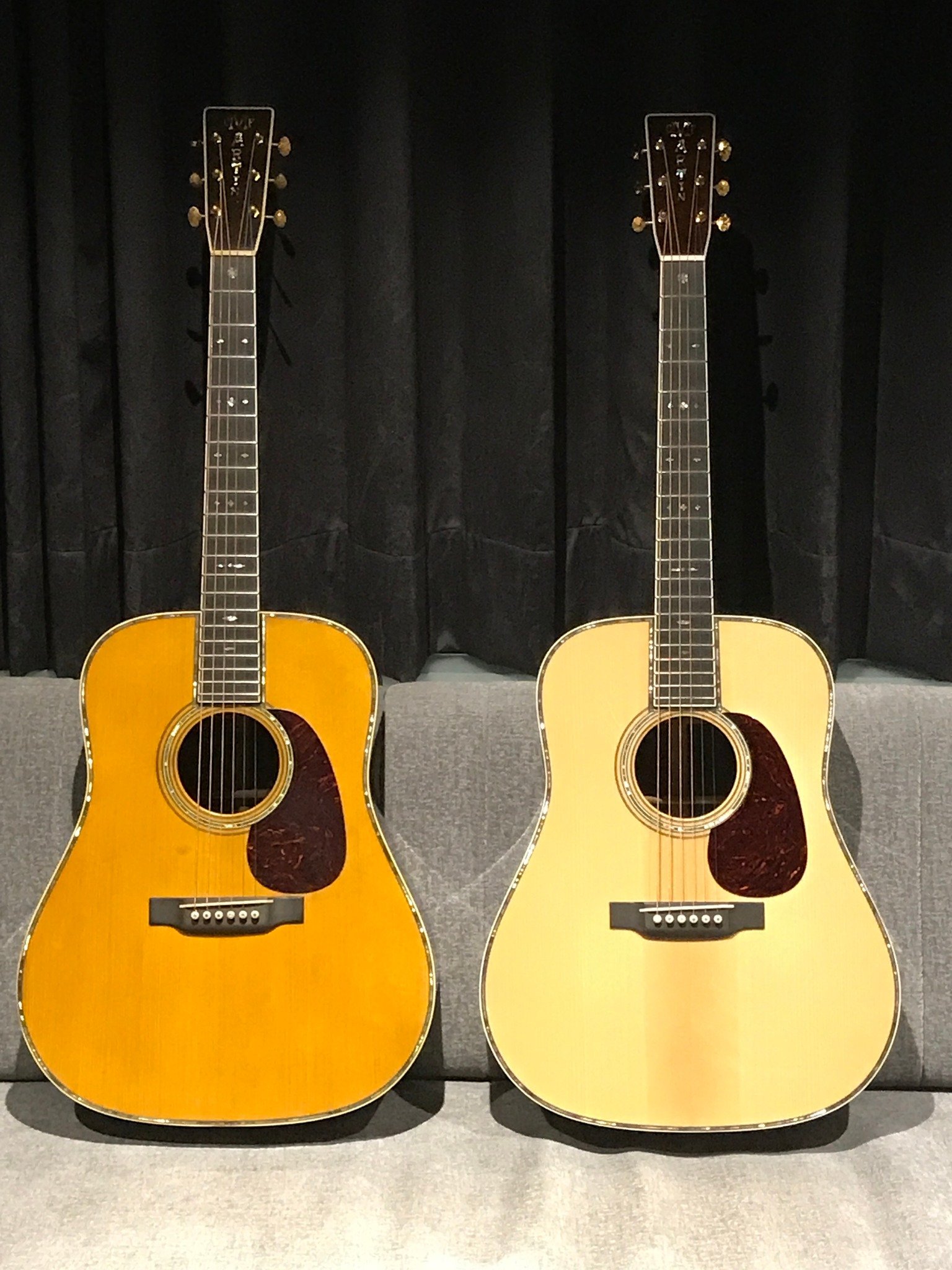 左邊是幫琴友買的同型號Aged舊化版本,聲音和木紋各有不同韻味,都是很棒的琴。
