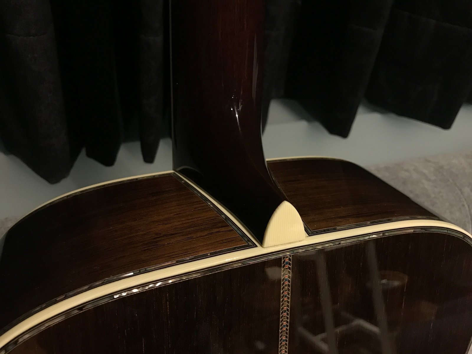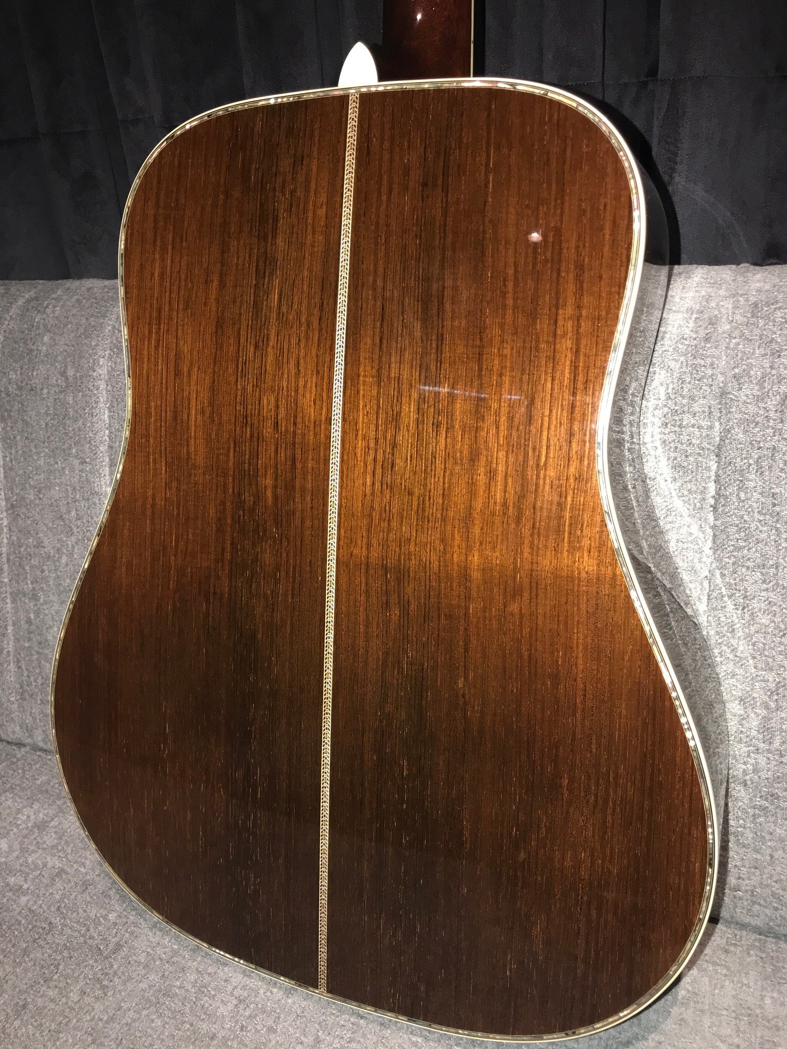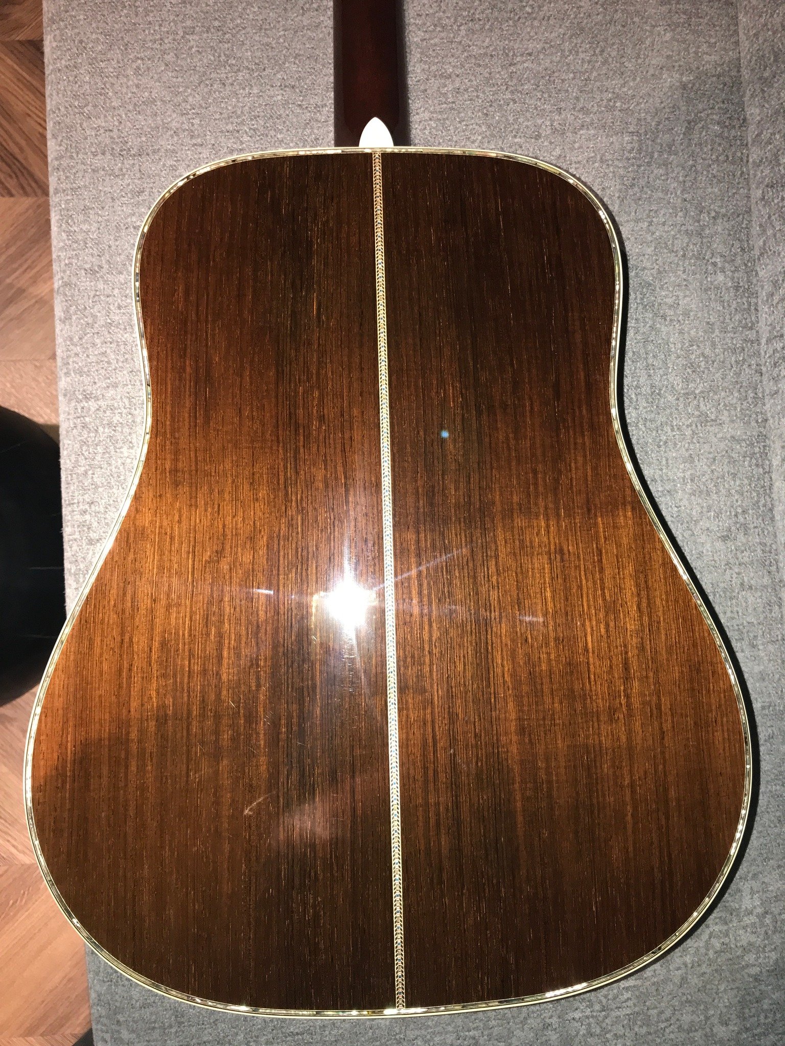 大約兩年前吧,目前已退休的老外dealer友人:My Favorite Guitars的Jon Garon在網站上傳了一把頂規型號:Martin D-45S Authentic 1936, 側背板是馬丁讓他親自挑選然後製成的,那木紋讓人過目難忘:直紋(straight grain), 徑切(quarter sawn,) 老木(old-growth),想要在馬丁新琴上看見這樣的巴玫難度極高!當時我和相融老師就一起注意到然後被電得要死不活,兩個人還超認真考慮要不要集資一起買下來,多年前幫李傑老師購入這款琴後,我們都被它驚人的音色和外觀細節征服了,我和相融在買琴的路上一直都不算衝動型,特別是價格如此昂貴的琴,但實在無法抗拒那萬中選一的木紋啊!結果隔不到一天就被買走了…好琴總是這樣,稍縱即逝。這幾年我們雖然還是三不五時會聊起那把令人神魂顛倒的馬丁,但也就慢慢淡忘在時間的洪流裡。