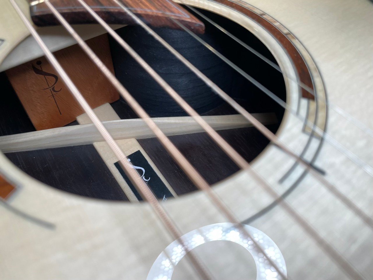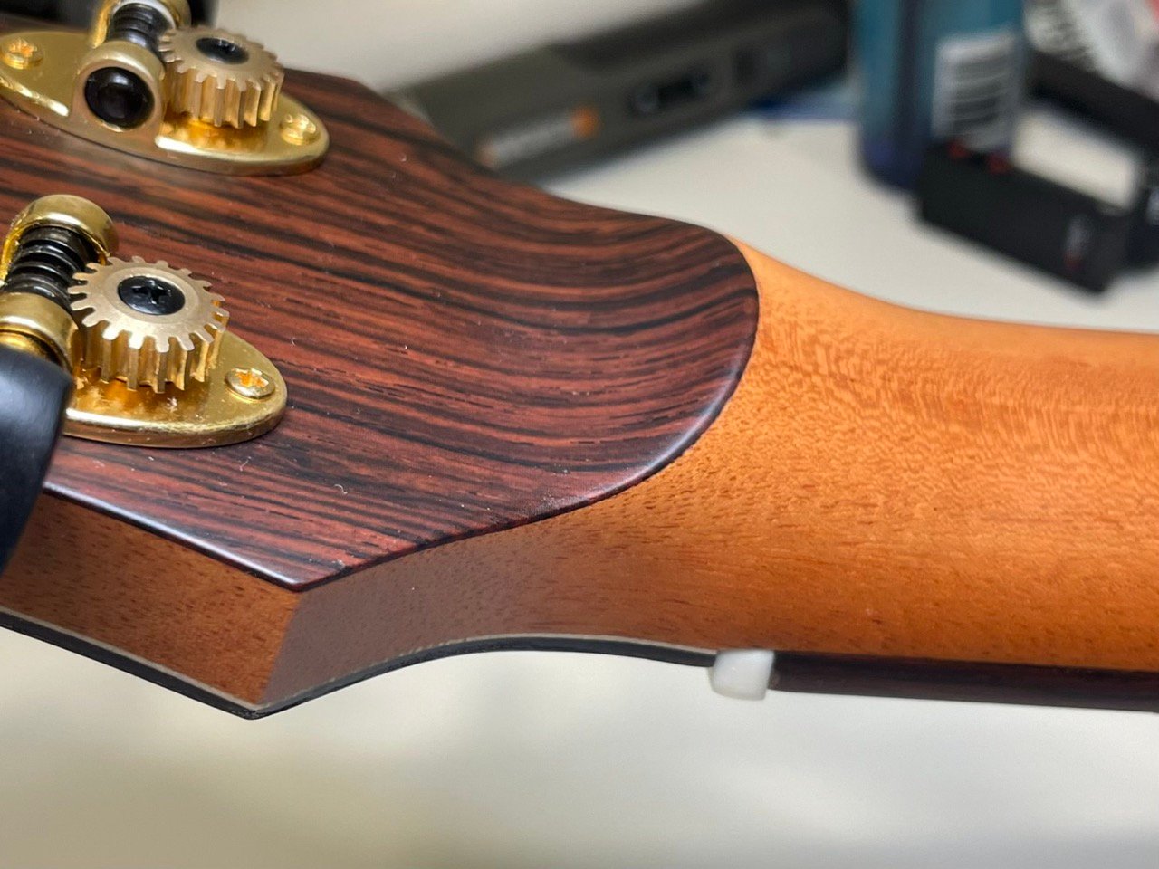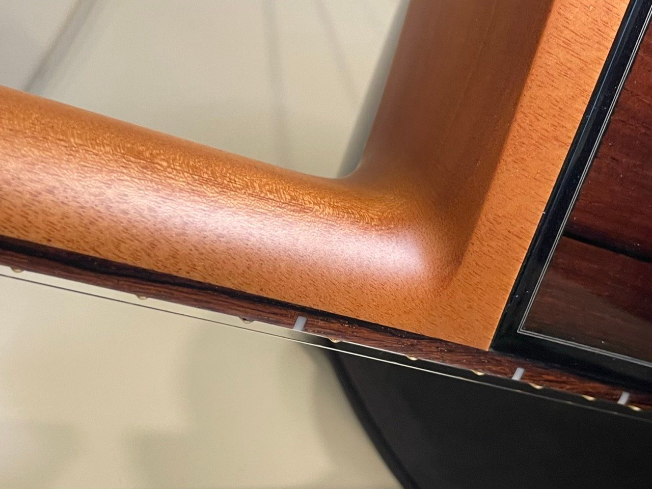 巴玫的側背給整把琴帶來相當厚實的份量,乍聽會有種罐子聲很重音量不大的感受,但若是你的閱聽量足夠多,會發現琴在手上身上的震動相當豐富,解析度非常高,泛音亦飽滿有勁,音色細膩乾淨彷彿清泉野溪般的透明,一手上就停不下來多玩了半小時,差點做不完正事🫠🫠🫠