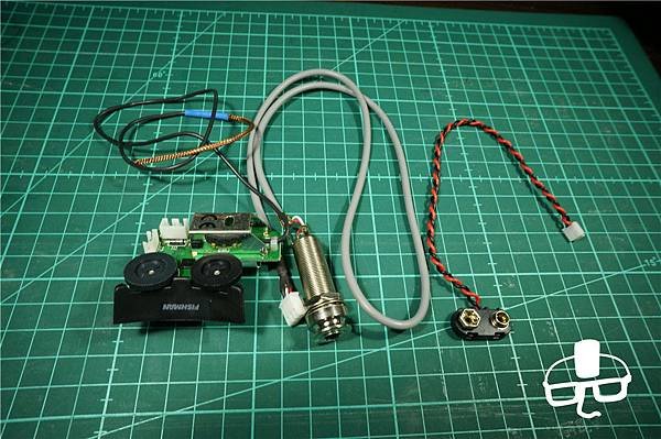 調音器、音量大小與電池等等都集成在一個盒子裡