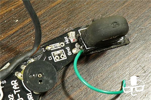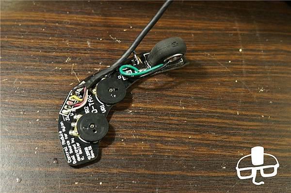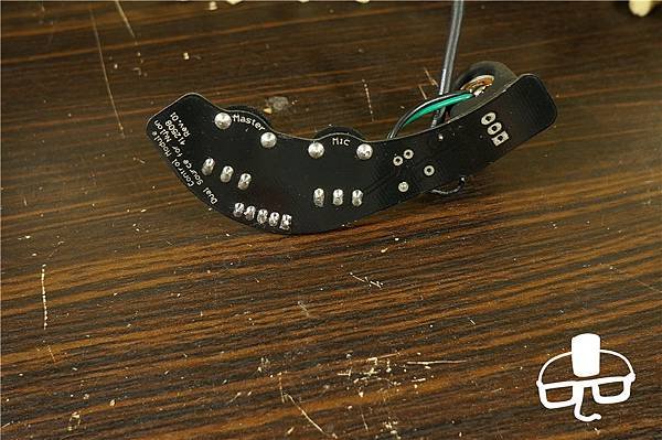 這款拾音器因麥克風位置設計的關係,零件沒有直接銲在電路版上