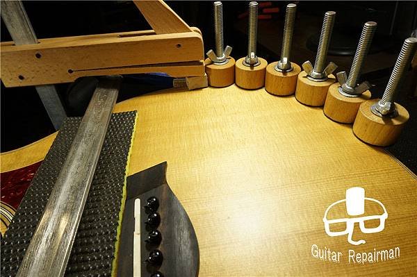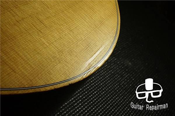 面板被壓扁處也有一條裂縫,一樣從內側撐開再上膠、加壓