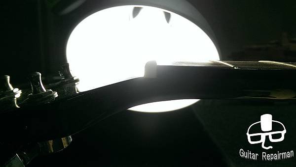 可以清楚看到每條弦都有相當程度埋在弦枕裡了