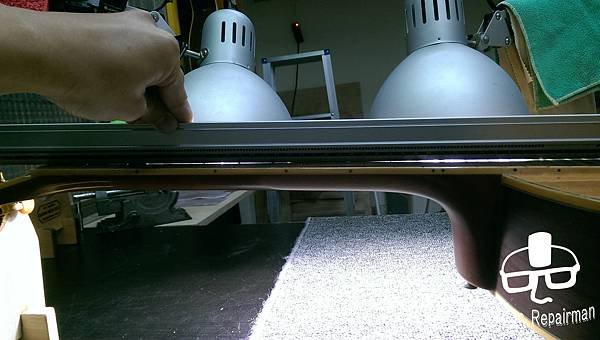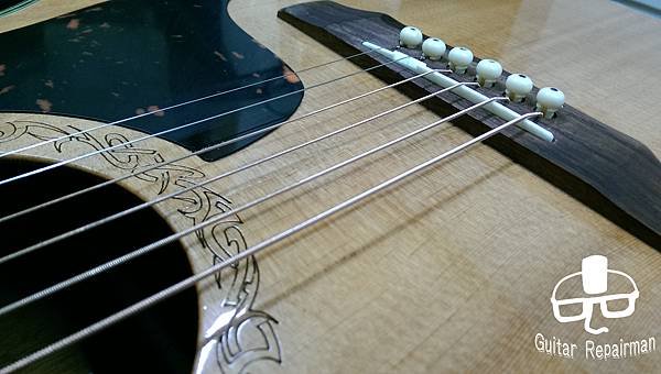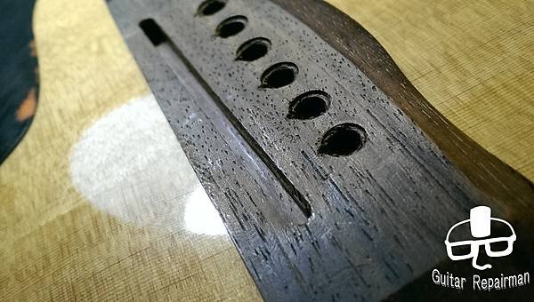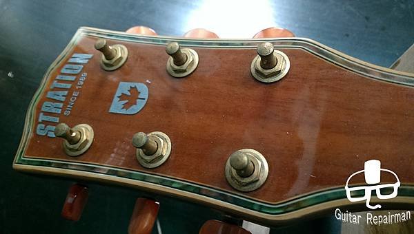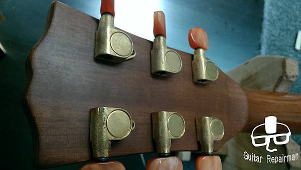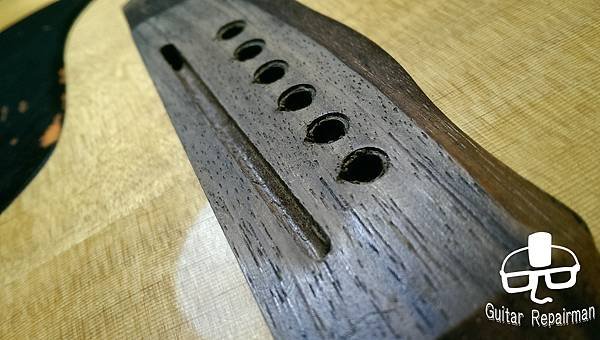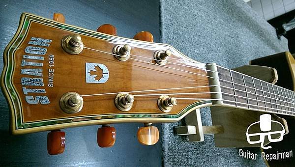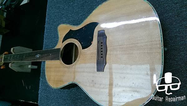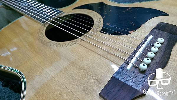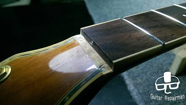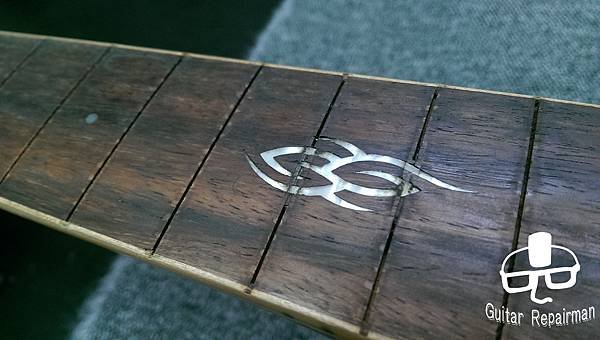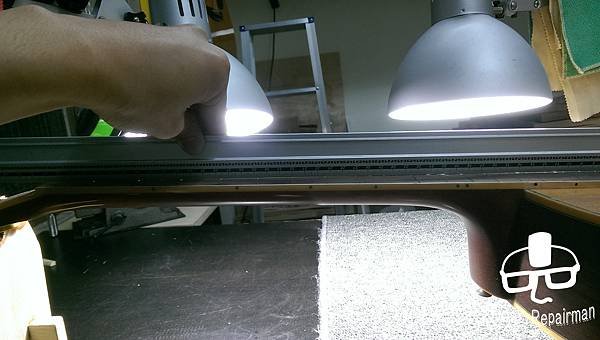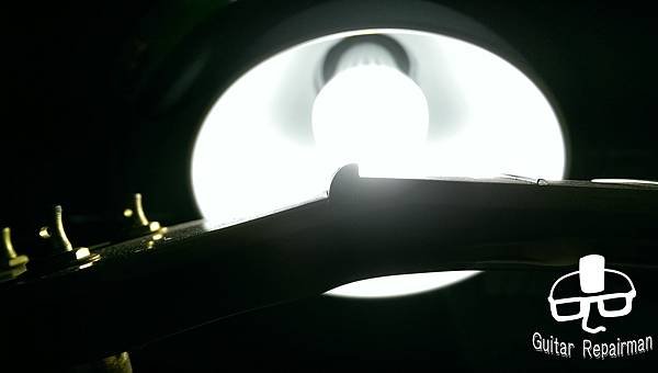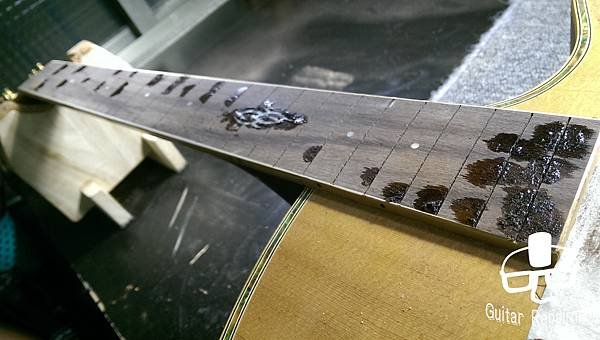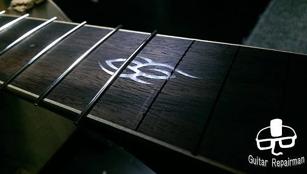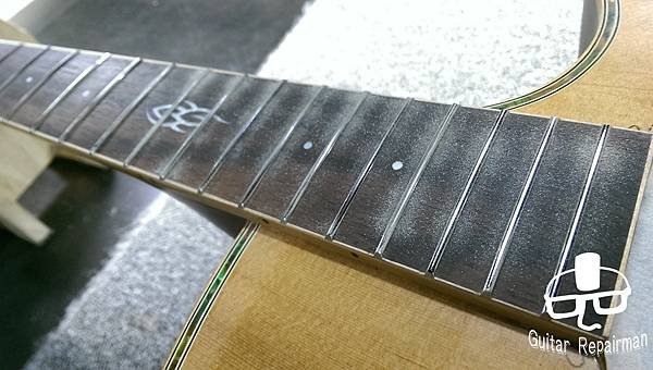 這把琴也許是先天不良,或是保存不當等因素,琴主發現調整起來不太對勁,弦高低不下去還很容易打弦,所以初步判斷可能是指板也變型了,導致一般的調整無法改善,必須要高一層級的維修