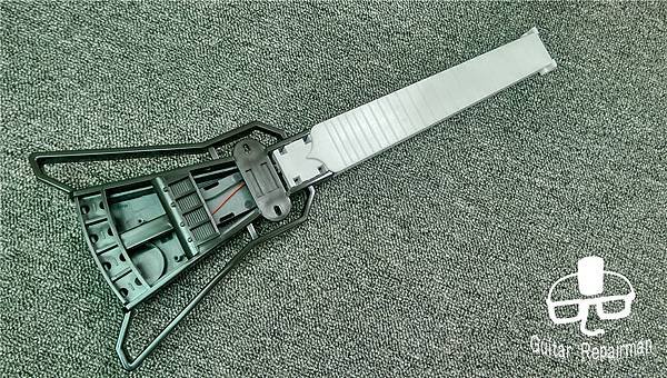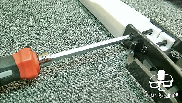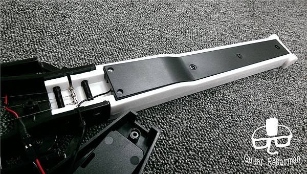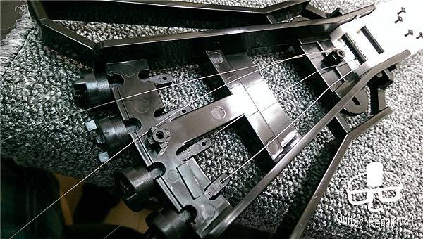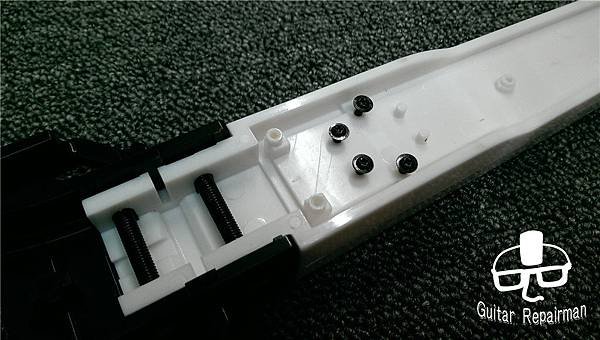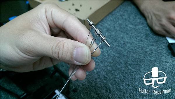 把弦裝進去 (琴頸的螺絲要先拆掉一個)