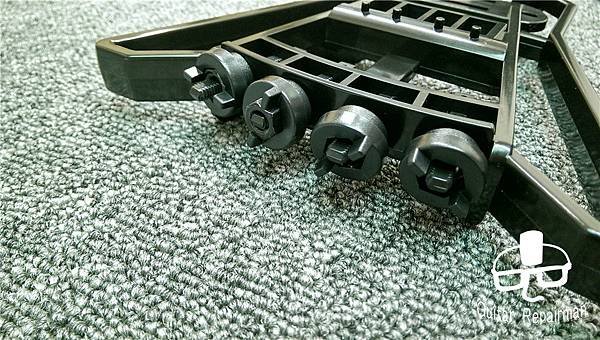 翻過來先把四個固定弦的扁頭螺絲暫時固定著