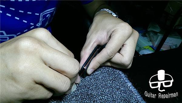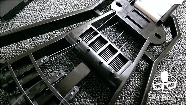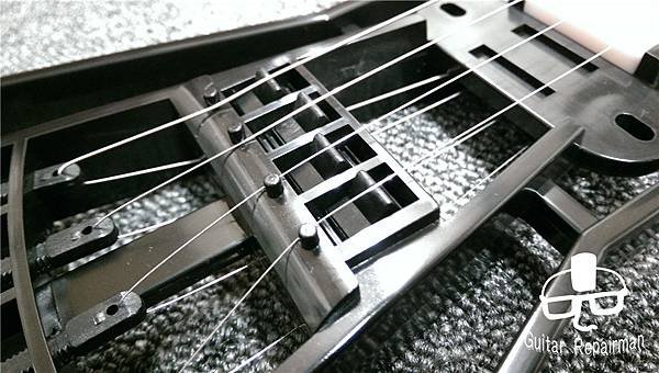 四條弦固定好稍微把弦調緊,把下枕放進去就不會掉出來囉