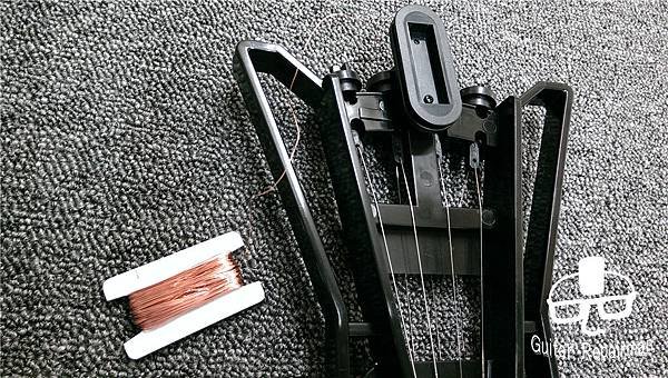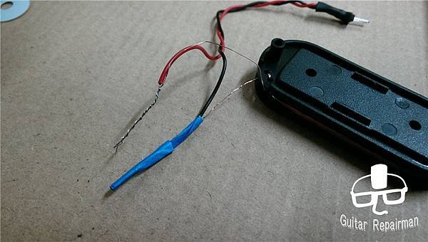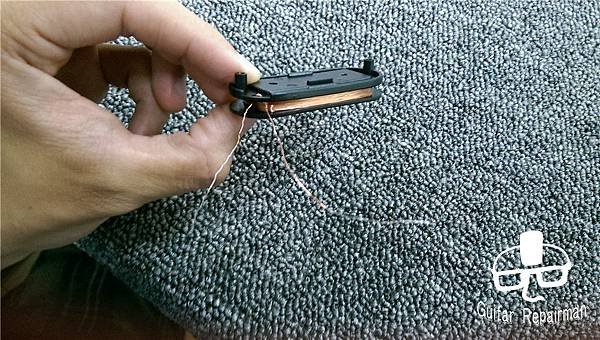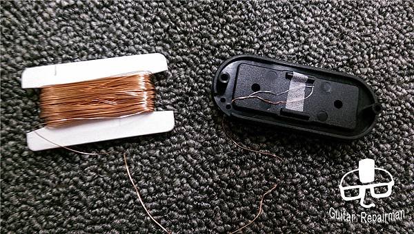 先把漆包線一頭穿過拾音器主體並留5公分長度,貼個膠帶讓他乖乖