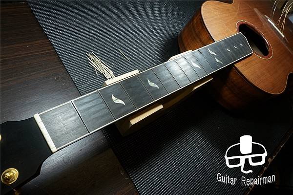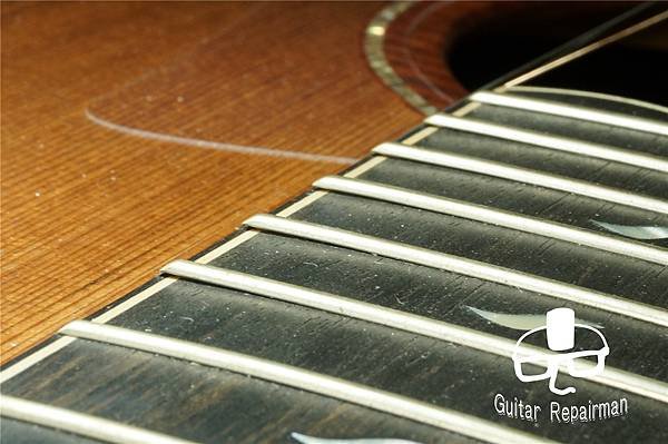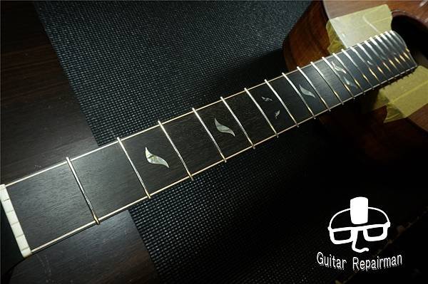 雖然fret還沒有顯著磨損,但為了好的手感與共嗚,全數徹換掉原廠fret是個艱難但不可不為的決定!