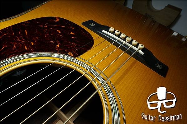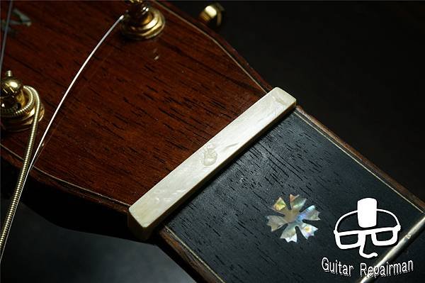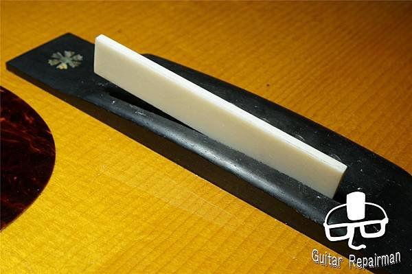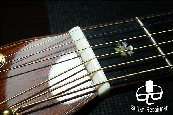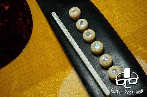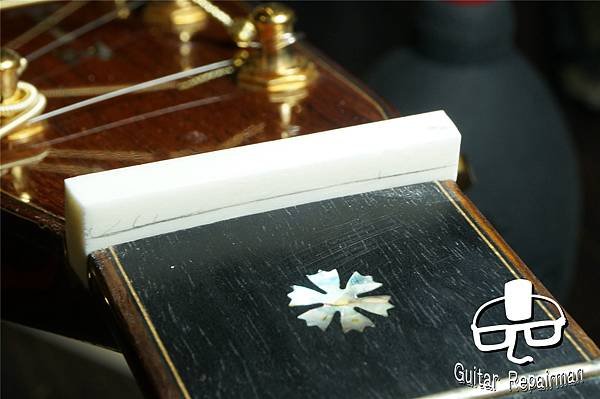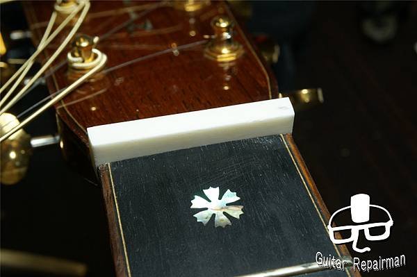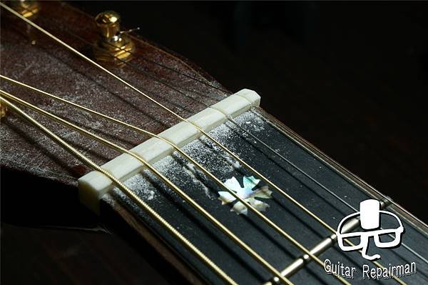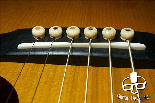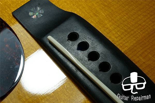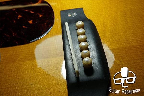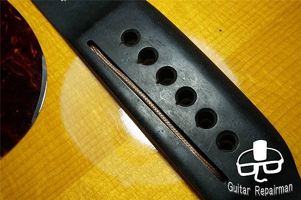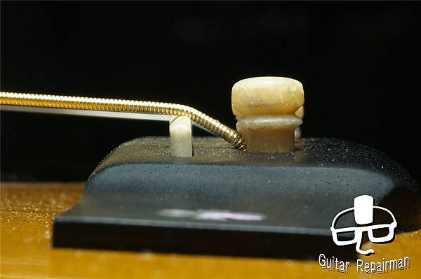 這個歪斜應是案主換弦時沒注意到有移位就將弦調音了