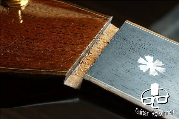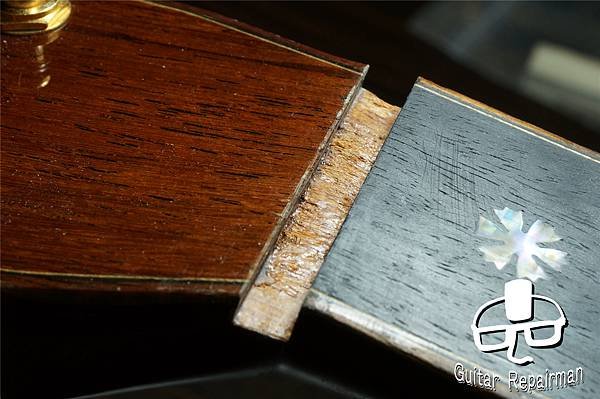琴頸的上枕接觸面不知為何被扯成這付慘狀