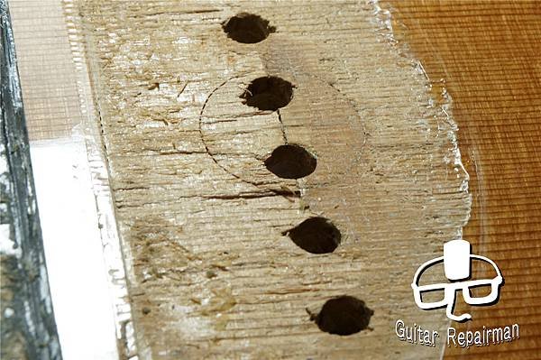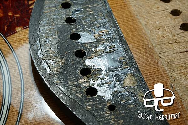 然而代價就是少了外圈面積的黏合力,琴橋較容易開膠或面板一變形就會有縫