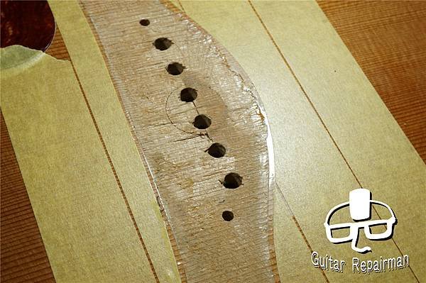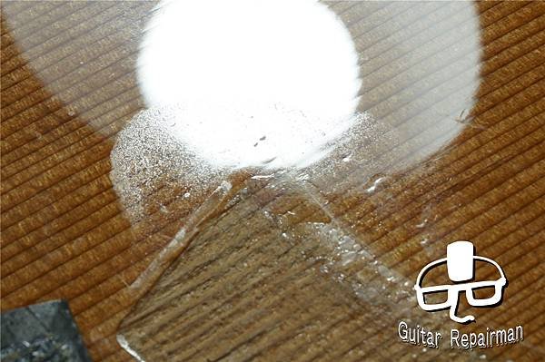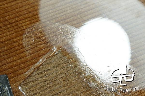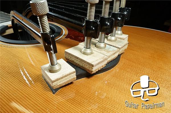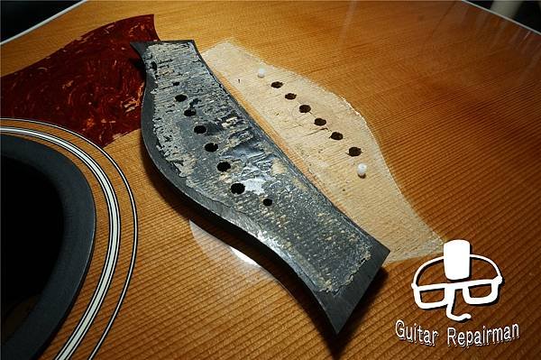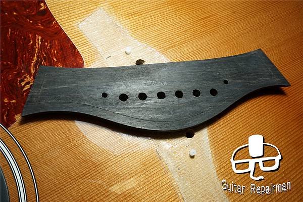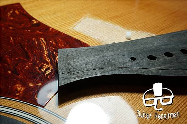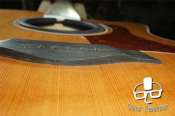 讓琴橋整個陷入在漆膜裡達到全琴橋的黏合面積,如同Martin的做法
