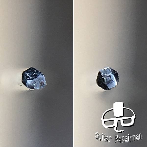 左邊是A貨弦橫斷面原本的樣子,不太利落,用fret鉗剪一下得到比較正常的橫斷面,
