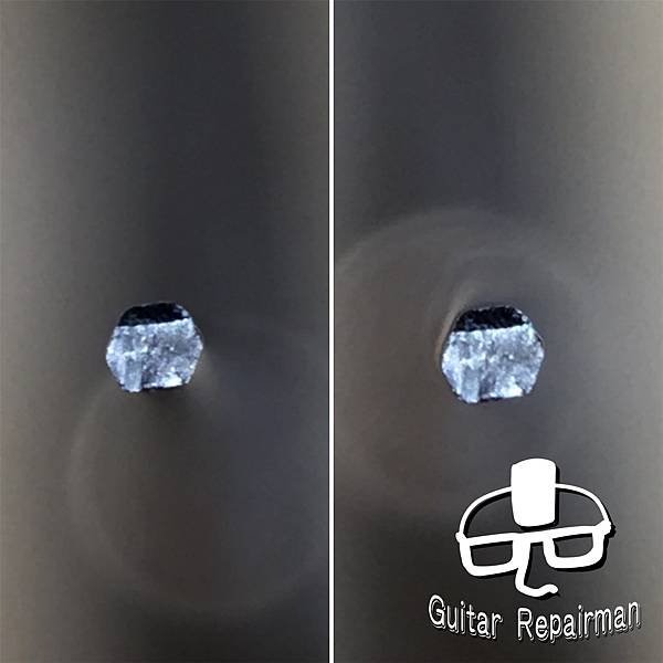 左邊A貨的2弦弦豆有粗糙的紋路,右邊正品光滑無瑕