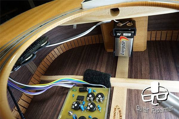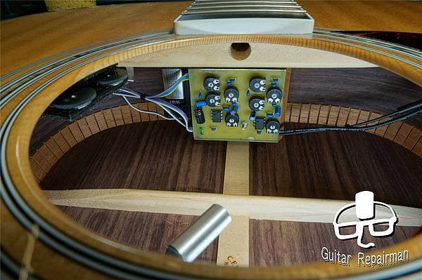 ◾️ 除了舊有拾音器遺留的固定零件之外,現有拾音器的內置前級更貼實了在背板上