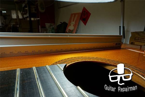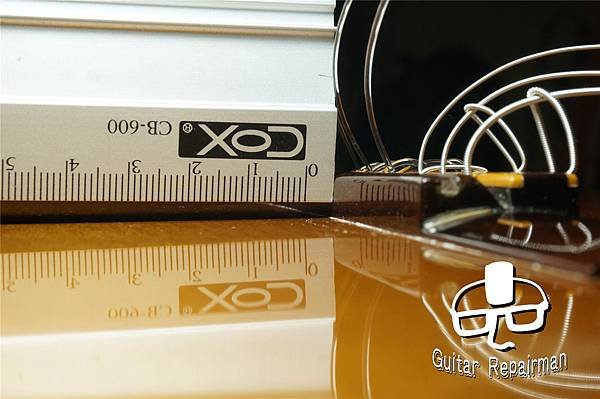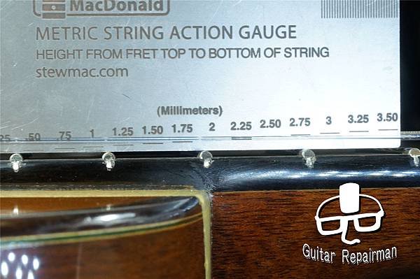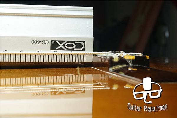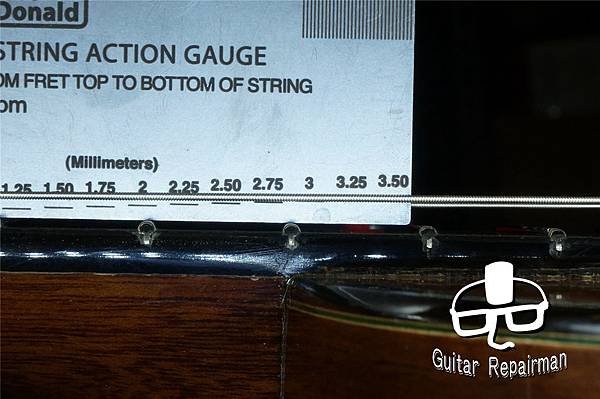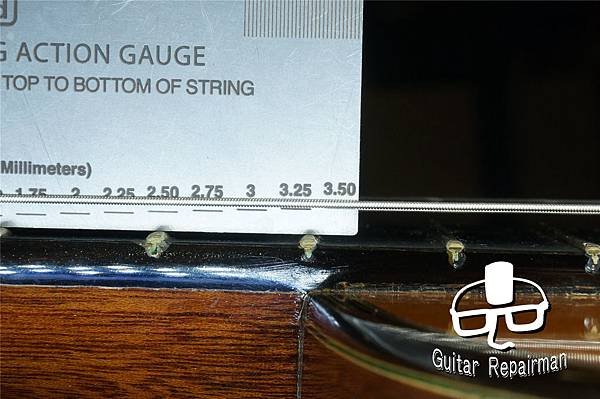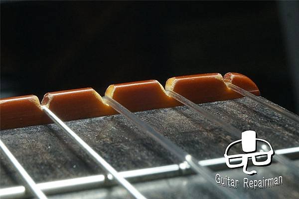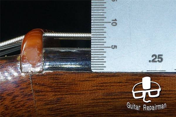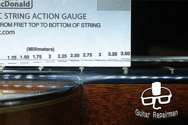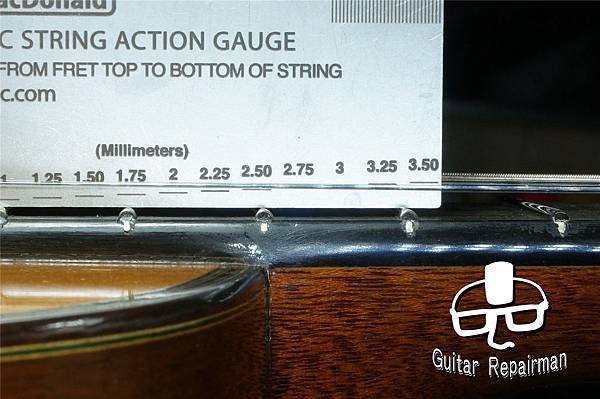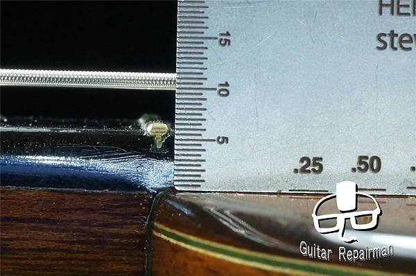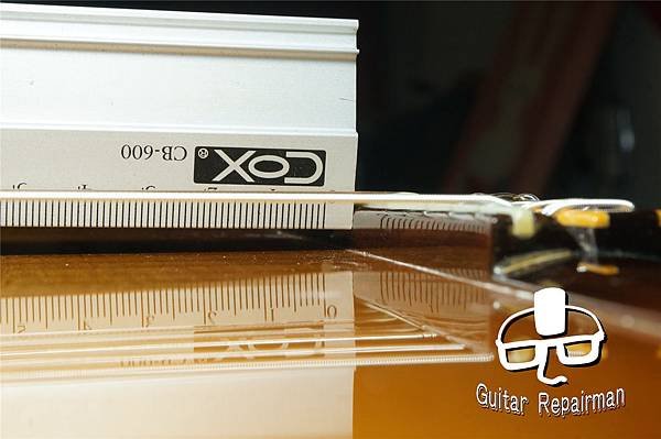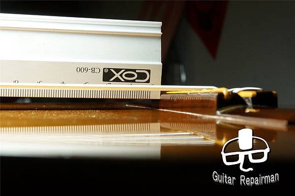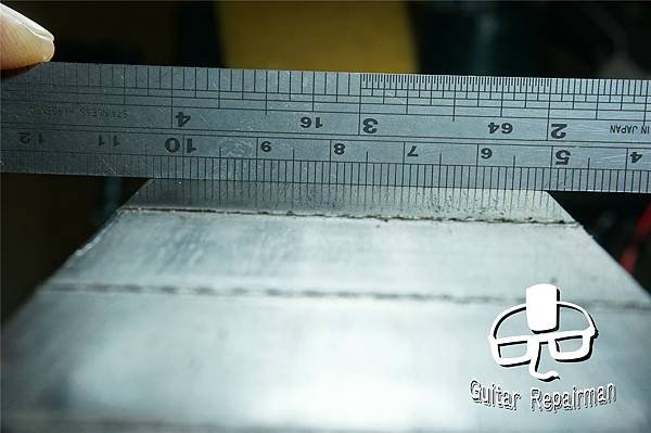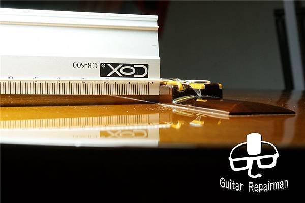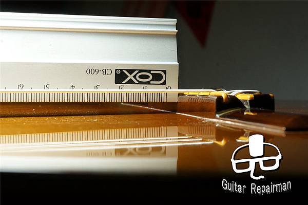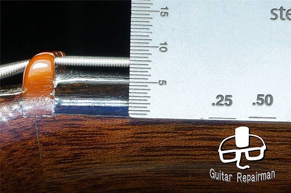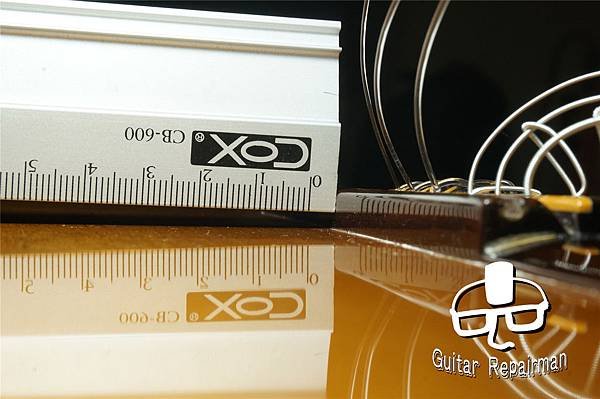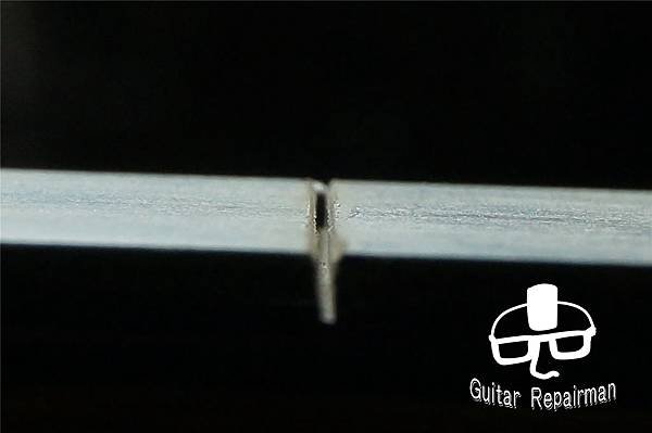 可以看出在fret增高(換新)與指板磨低的情況下,第1格仍有如此大的間隙