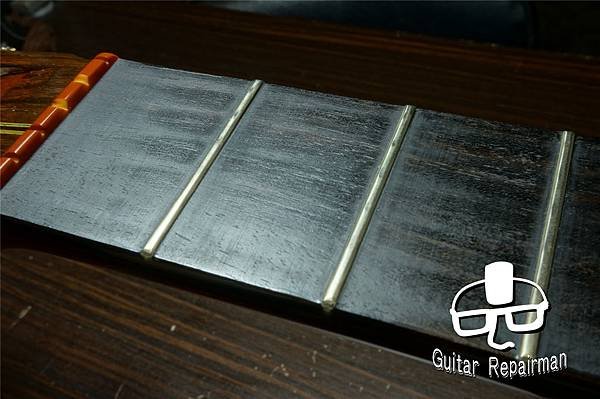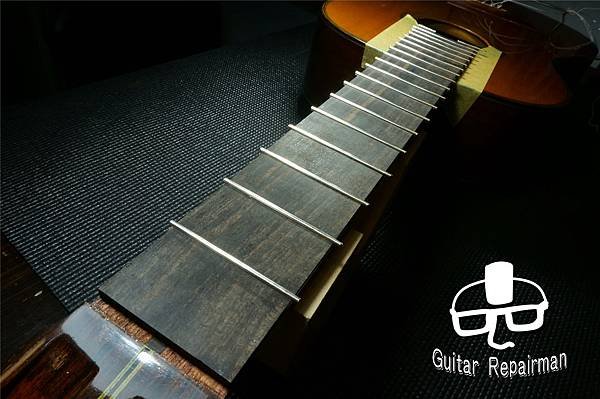 除了需要整平指板的動機之外,fret的原始高度被整平掉太多是促成Refret的第2項動機