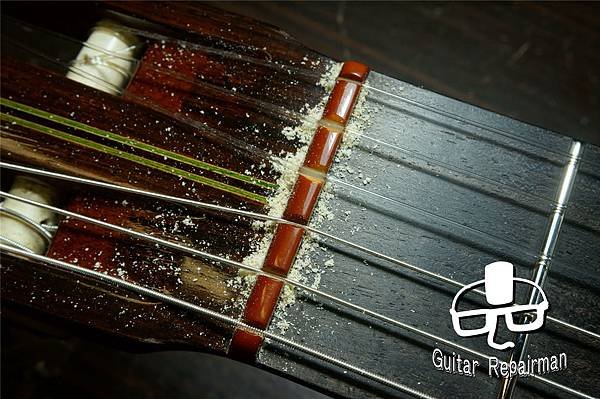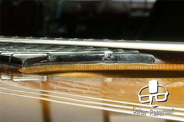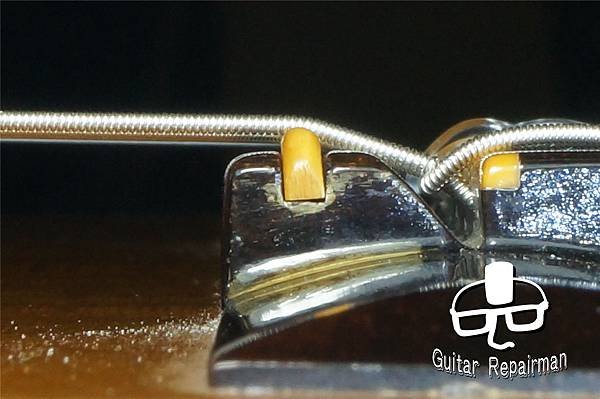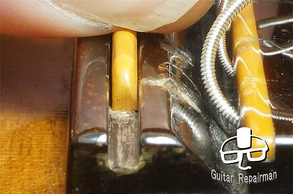 上枕2、3弦被尖銳物磨過,導致弦無法伏貼到底造成共嗚減損