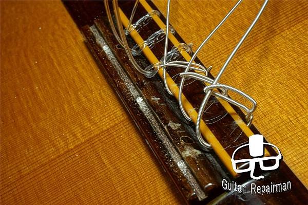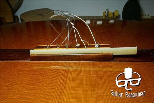 經觀察,Hauser吉他一向埋入琴橋的下枕約只有1/3