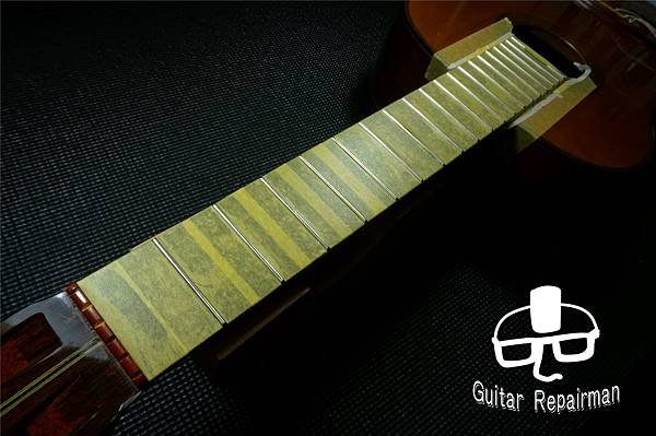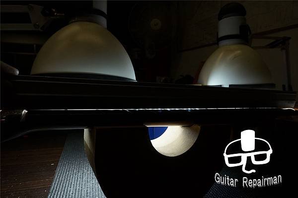 不使用傳統Crowing file,手工導圓確保每根fret同樣圓弧