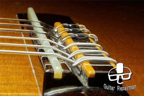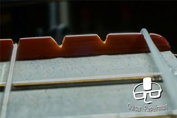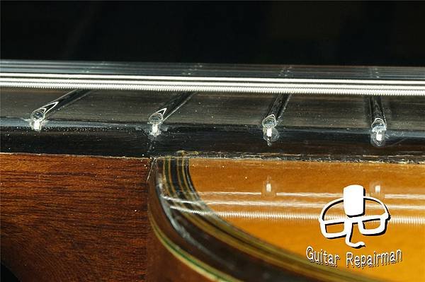 弦壓角Brake algle已稍有不足,弦碰到琴橋,高音弦也可輕易被拉起