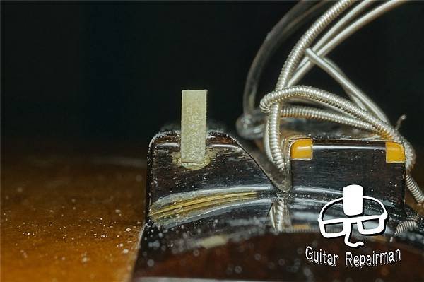 ◾️ 下枕過於矮扁已無空間可磨低,下枕槽內的鐵釘使得磨低琴橋變得不可行
