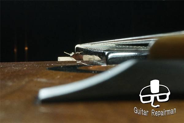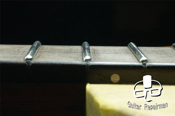 市售的專用Crowing File弧度為固定的,只有手工研磨才能抓回每一支fret的圓弧度