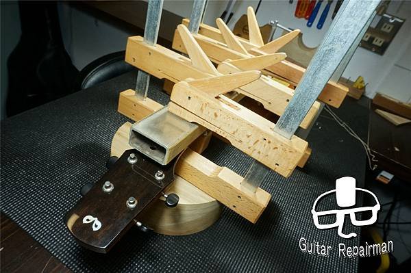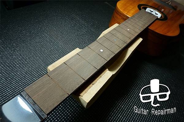 安裝新fret後固定好靜置隔夜
