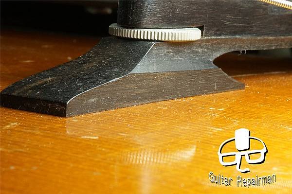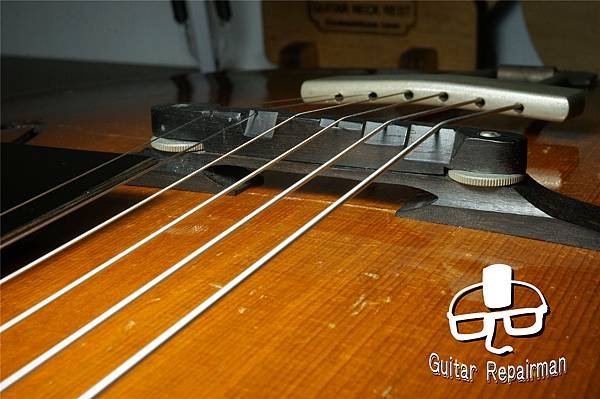 為了補償琴橋的高度造成高音側弦高低不下來,只好將螺絲調低處理