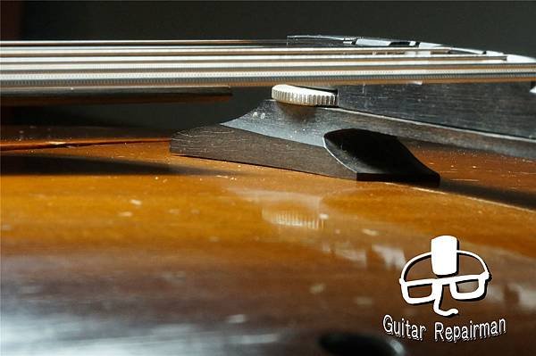 指板與fret都很薄,琴橋亦不可更動,只剩neck reset唯一解