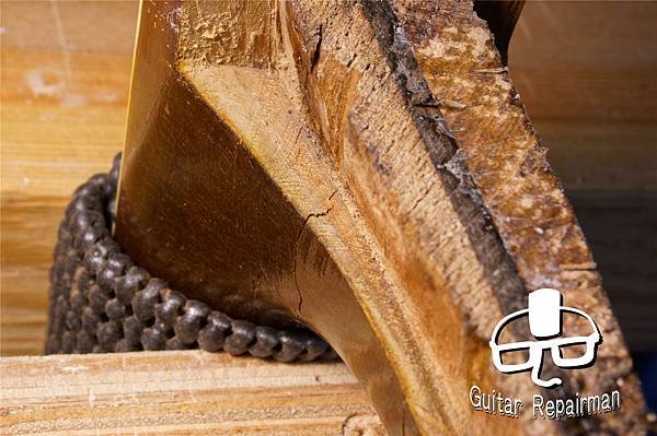 老琴的木材木質素會劣化變得脆弱,除了切削起來沒有木紋感之外也容易崩角