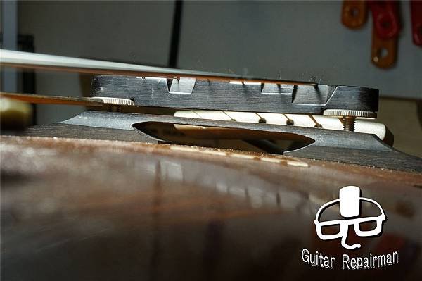 在琴頸仰角正確,弦可以正常驅動琴身與琴橋密合度改善後