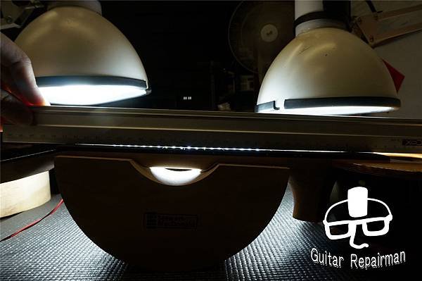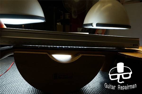 直線檢查,因末端凸起導致指板中間區域呈現相對凹陷
