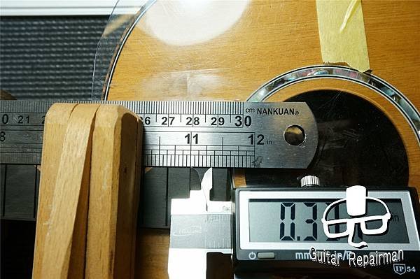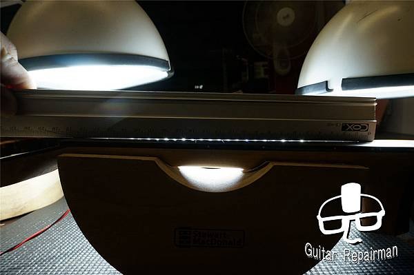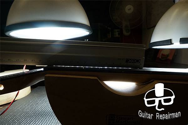 利用fret既定位置與相應模具來做最後的琴橋定位,故這邊安裝好fret後