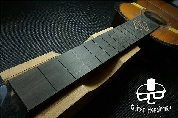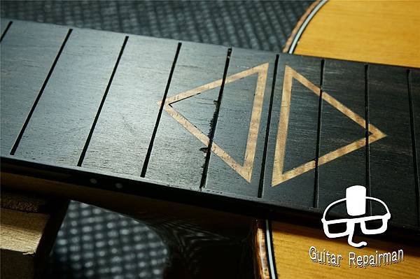 送回安裝琴橋與調校後琴主彈了一段時間,指板出現了認真的痕跡